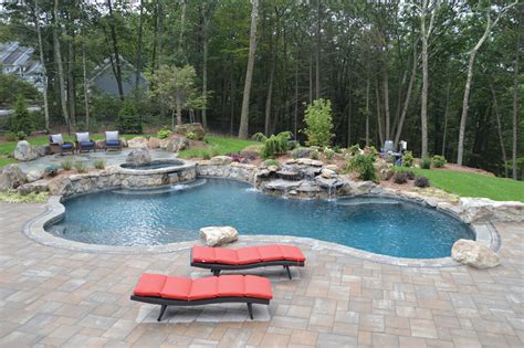 Pool Designs Avon Ct - Best swimming pool contractor in connecticut, specialized in custom swimming pool construction and designs. Swimming pool design with lagoon and waterfalls. We'll help you create a design that works for your. Pool with waterfalls and natural stone spa wall. Swimming pool design with complete.